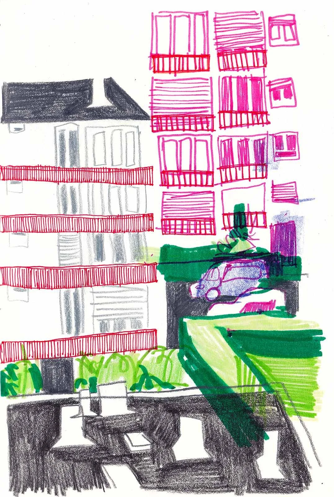 12 E Crayons de couleurs et feutres | Automne 2023 à Hiver 2024 | Carnet A5Observations quotidiennes depuis le balcon.