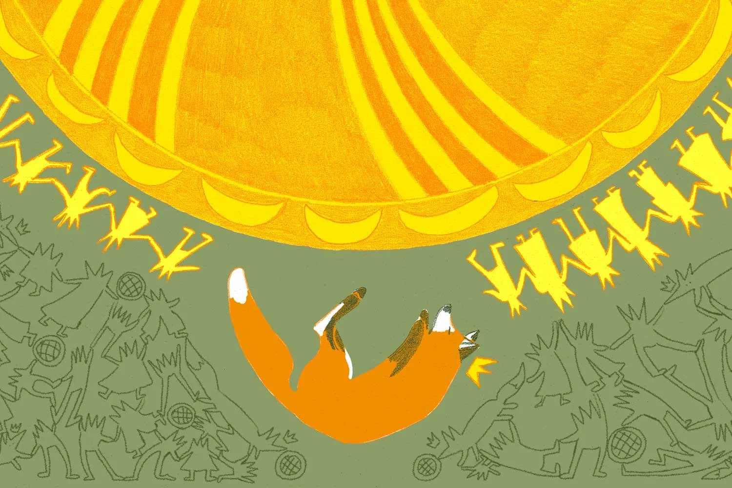 Pour cette illustration, je suis partie du mythe du lapin sur la lune et sur la révolution des planètes sur lequel se base notre système calendaire.